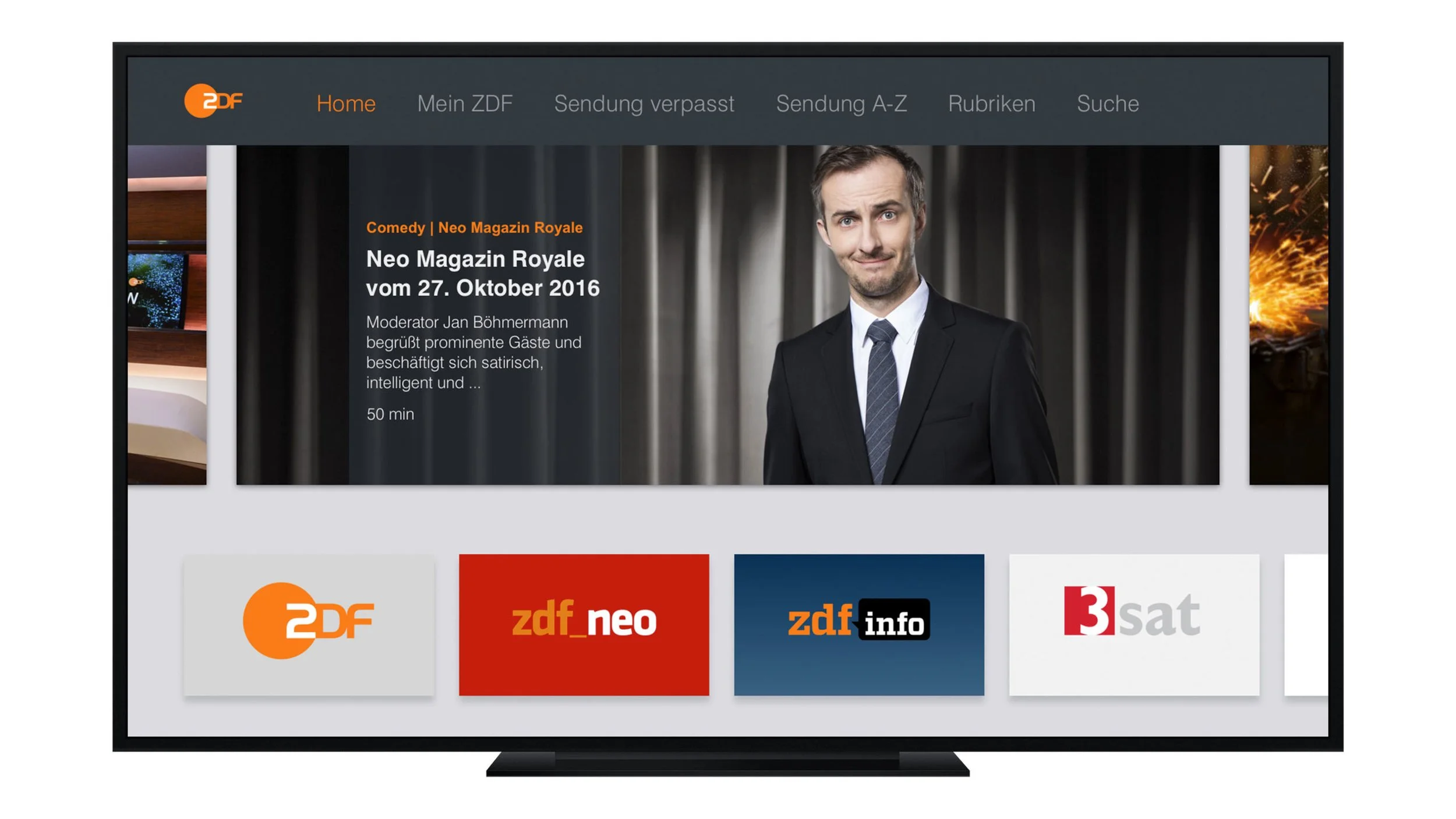 A custom TV app for Germany’s public broadcaster ZDF, tailored to user needs and optimized for a new platform — Apple’s brand-new Apple TV. The app enables viewers to catch up on missed programs and stream live content from ZDF and its partner networks.